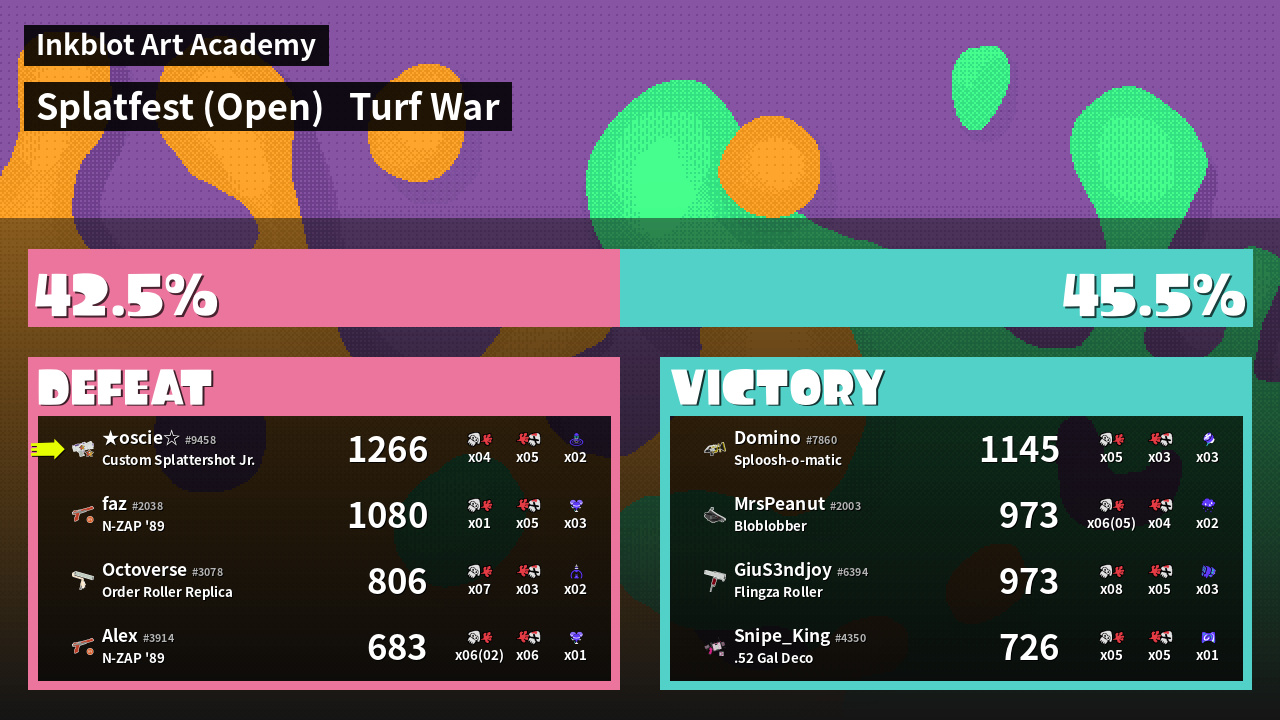 | Medals | #1 Turf Inker #1 Enemy-Base Inker #1 Ground Traveler | ||