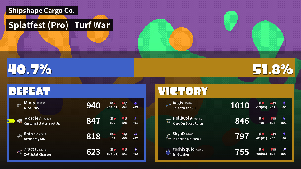 | Mode | Turf War - Splatfest (Pro) | ||
