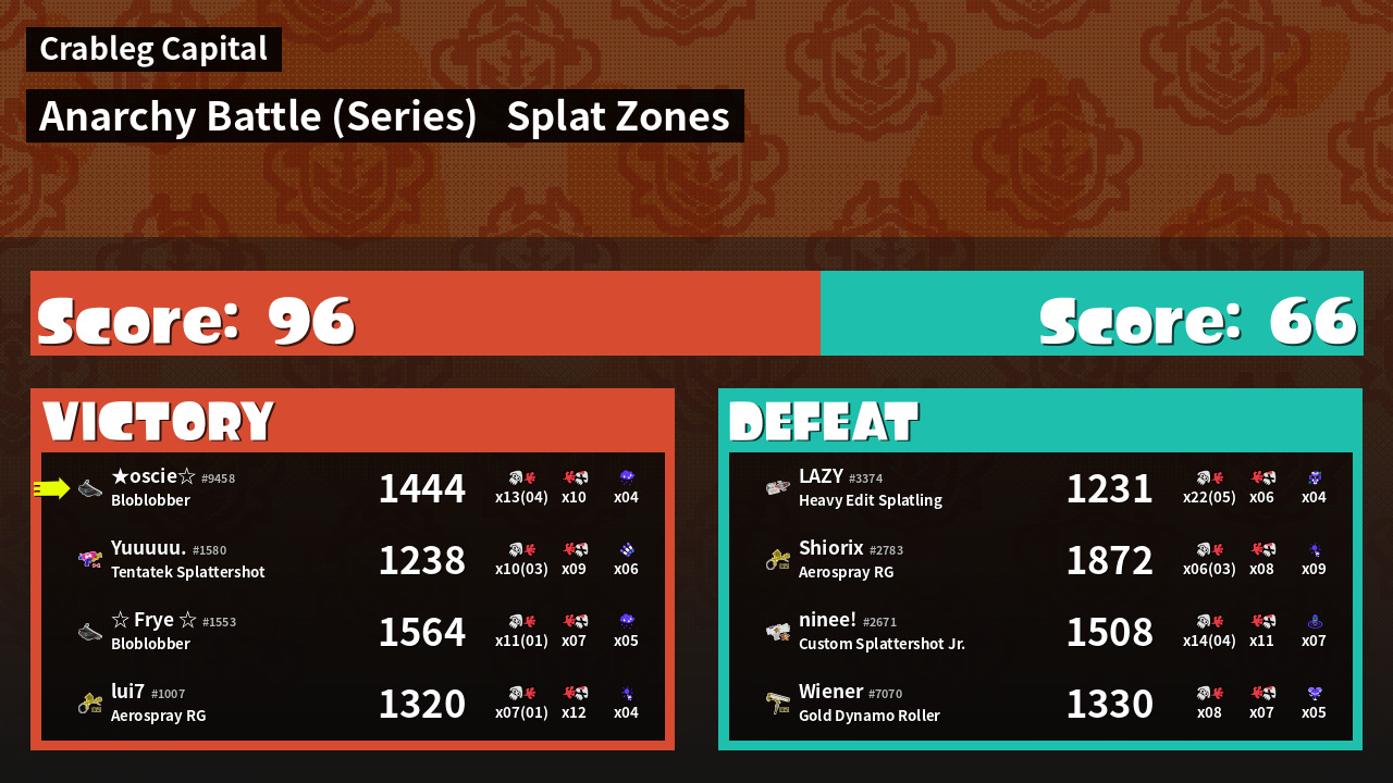 | Mode | Splat Zones - Anarchy Battle (Series) | ||