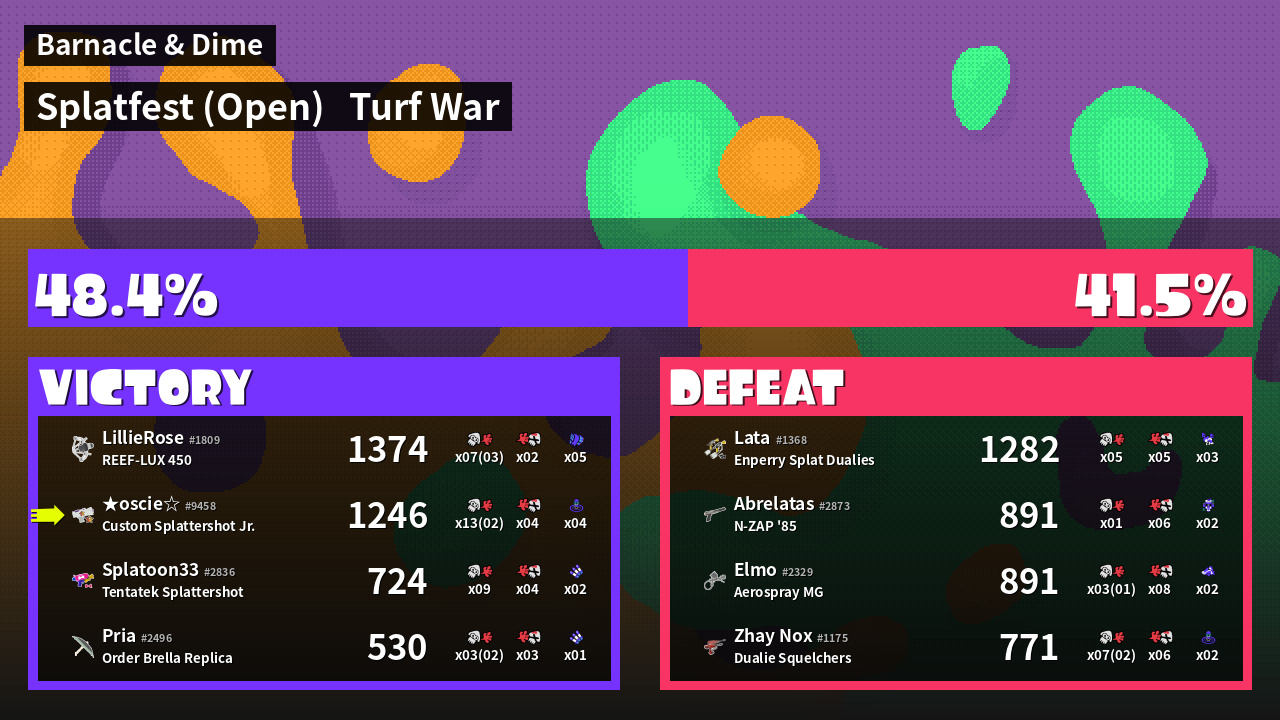 | Medals | #1 Overall Splatter #1 Popular Target #1 Enemy Splatter | ||