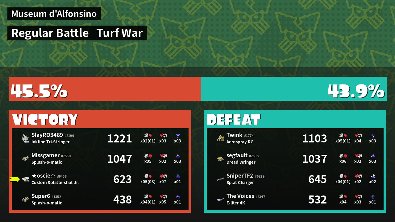 | Medals | #1 Overall Splatter #1 Splat Assister #1 Ground Traveler | ||