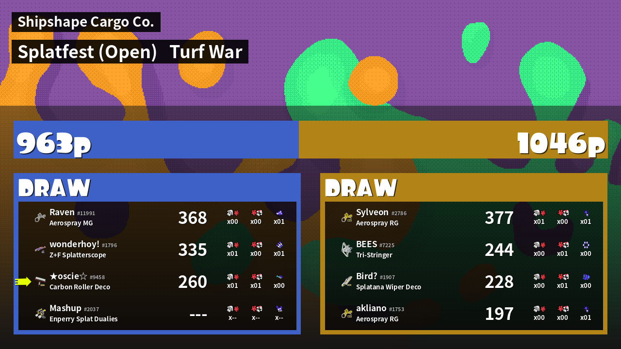 | Weapon | Carbon Roller Deco ( Burst Bomb / Trizooka) | ||
