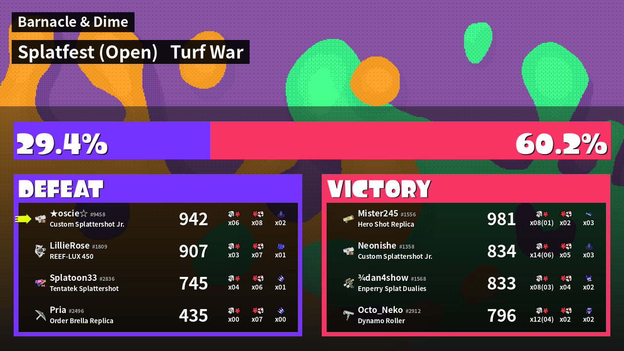 | Medals | #1 Overall Splatter #1 Turf Inker #1 Popular Target | ||