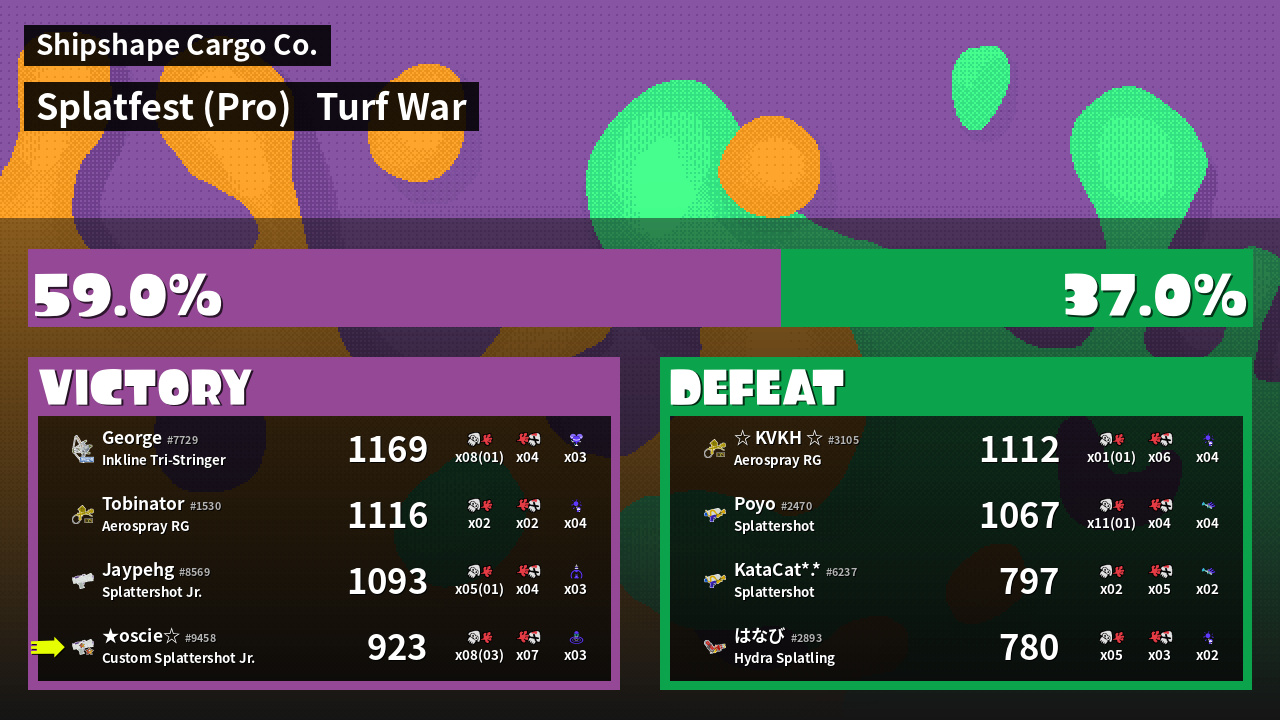 | Medals | #1 Overall Splatter #1 Splat Assister #1 Base Defender | ||