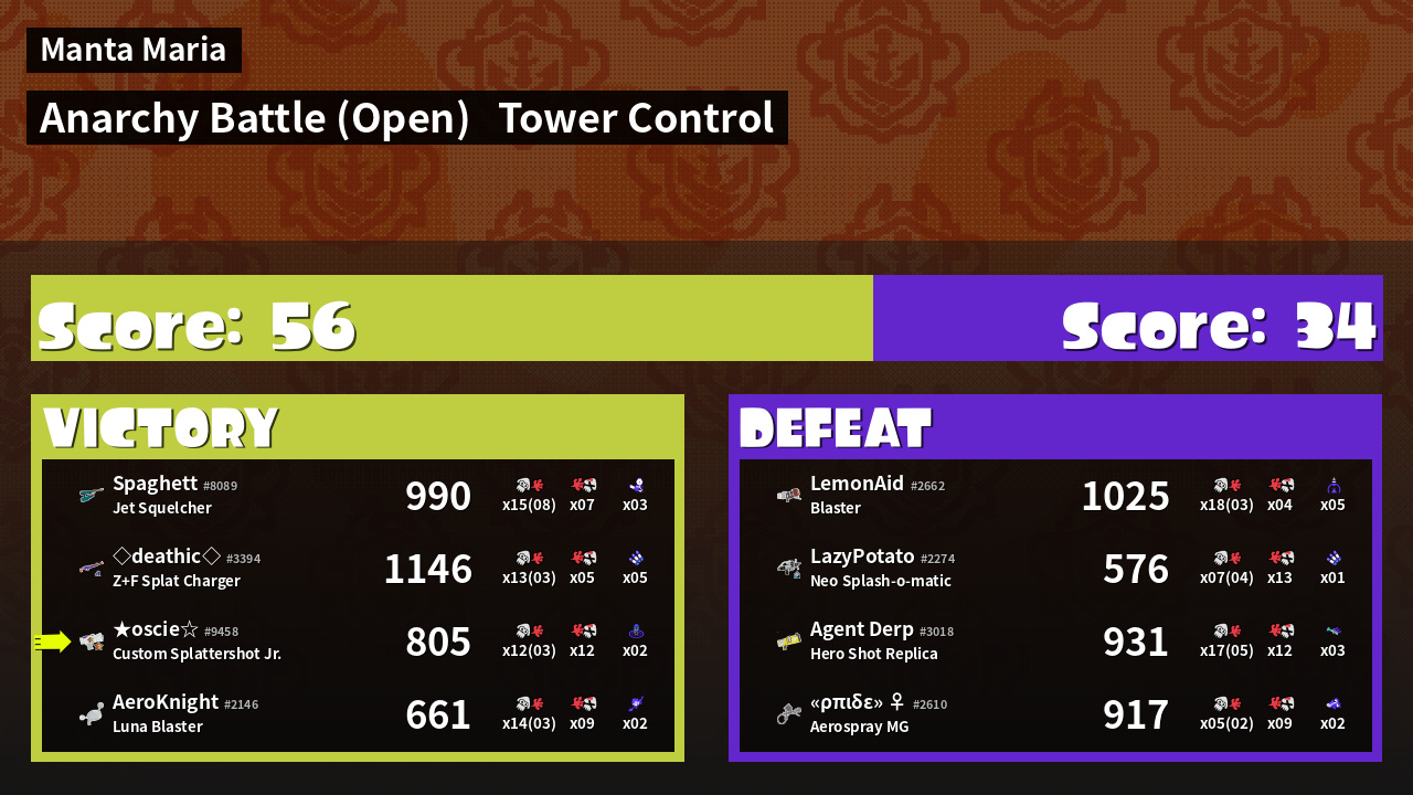 | Mode | Tower Control - Anarchy Battle (Open) | ||