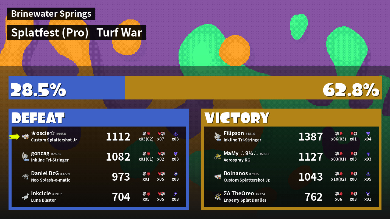 | Mode | Turf War - Splatfest (Pro) | ||
