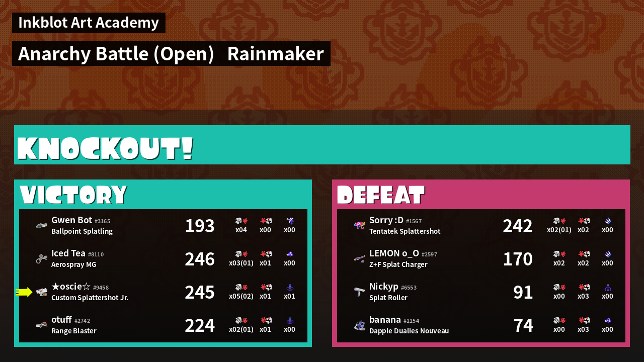| Mode | Rainmaker - Anarchy Battle (Open) | ||