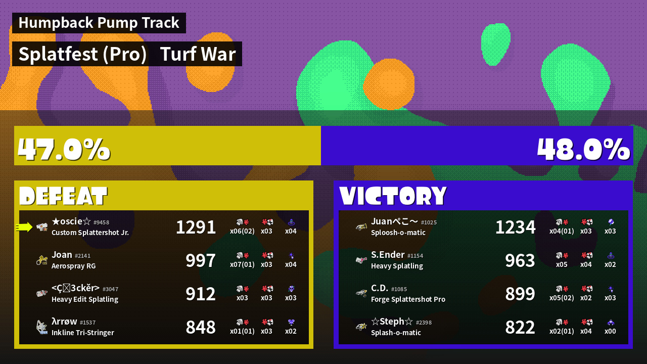 | Mode | Turf War - Splatfest (Pro) | ||