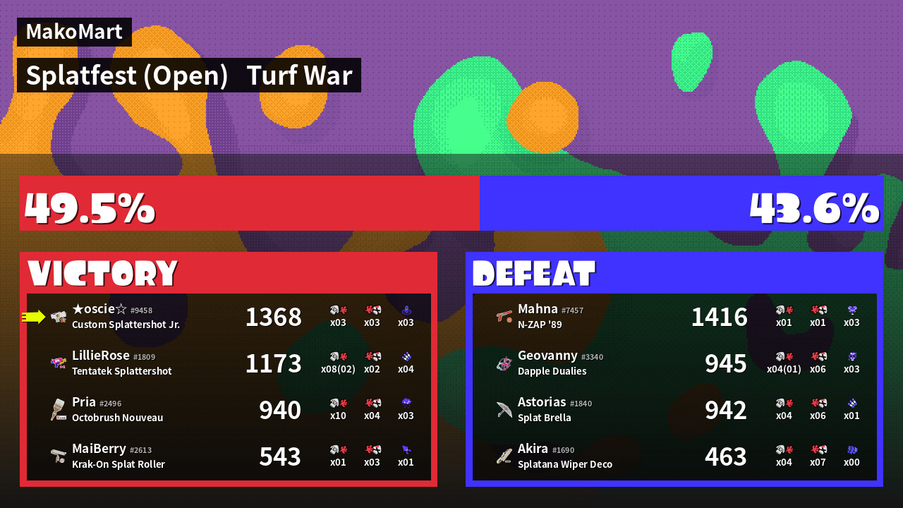 | Medals | #1 Turf Inker #1 Enemy-Base Inker #1 Ground Traveler | ||