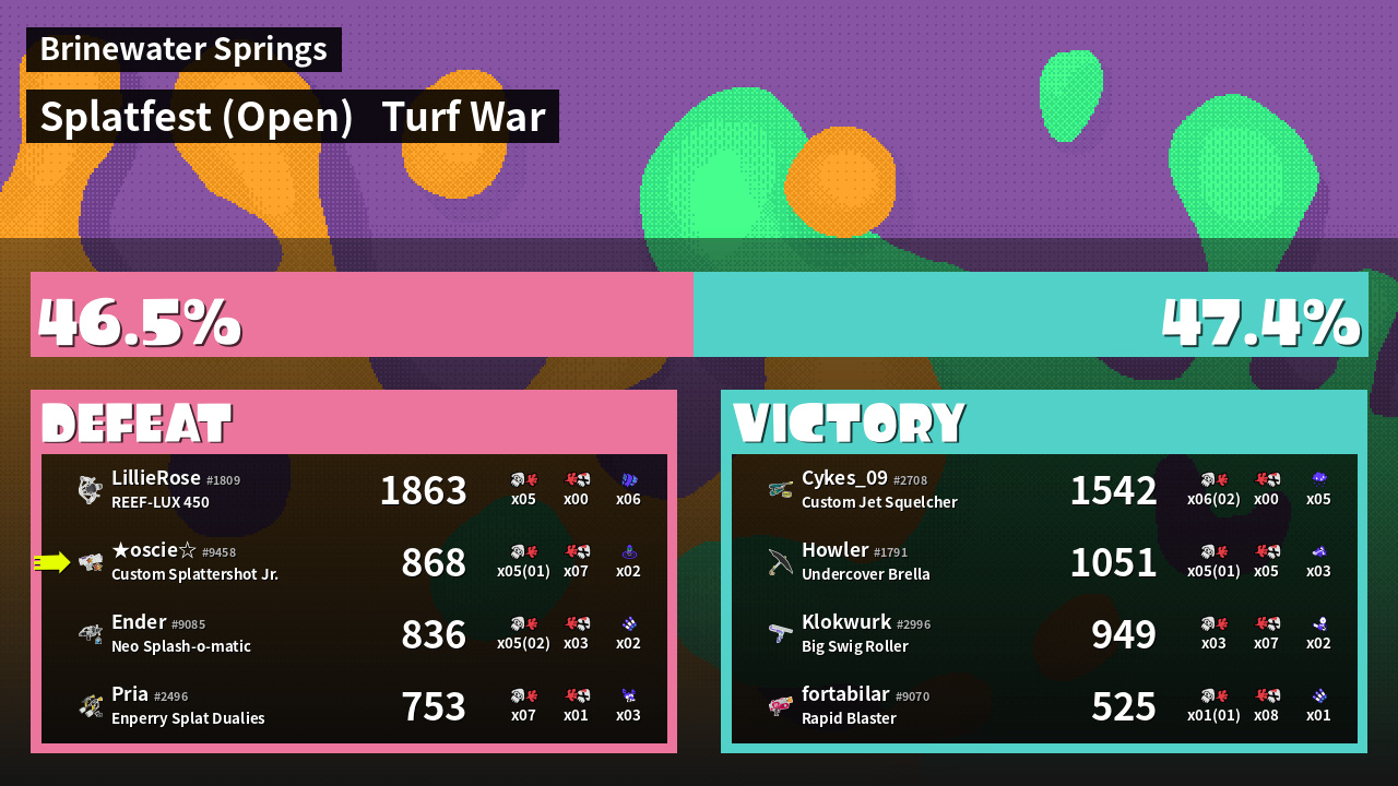 | Medals | #1 Wave Breaker User #2 Overall Splatter #2 Turf Inker | ||