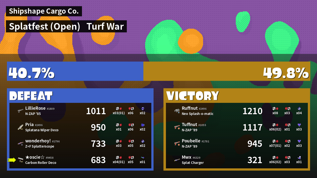 | Medals | #1 Overall Splatter #1 Popular Target #1 Super Jump Spot | ||
