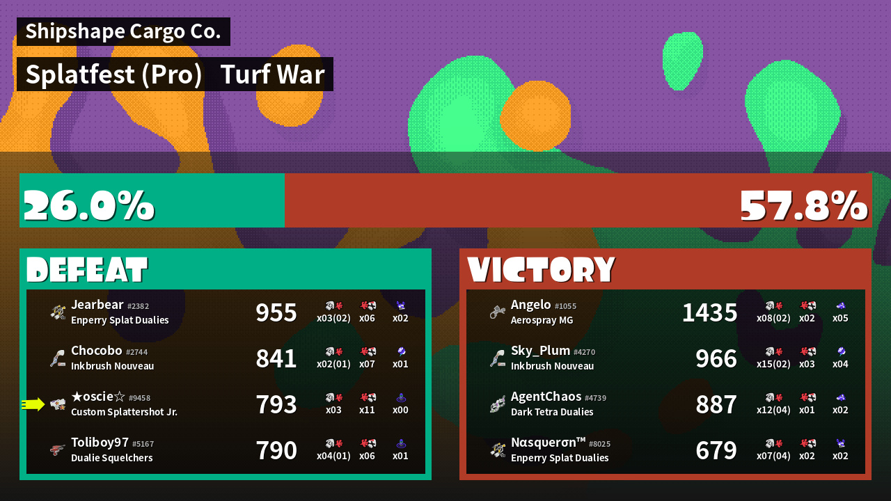| Medals | #1 Popular Target #1 Enemy-Base Inker #1 Enemy Splatter | ||