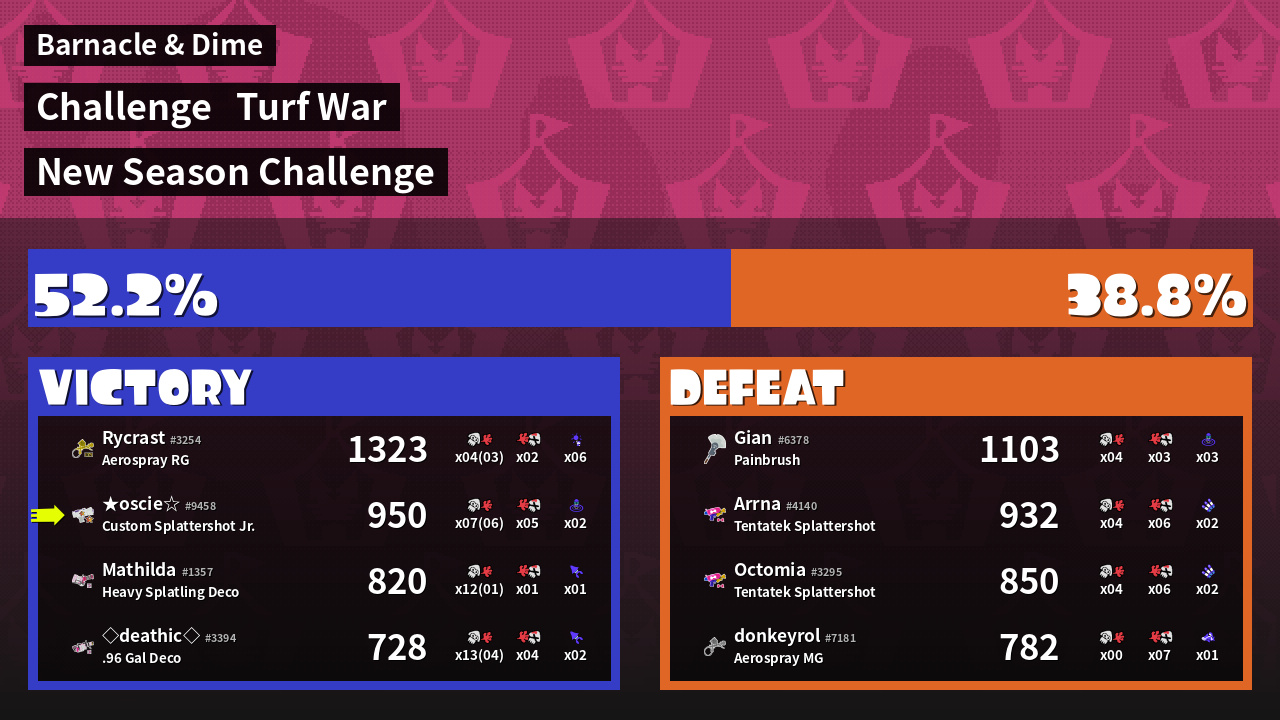 | Mode | Turf War - Challenge | ||