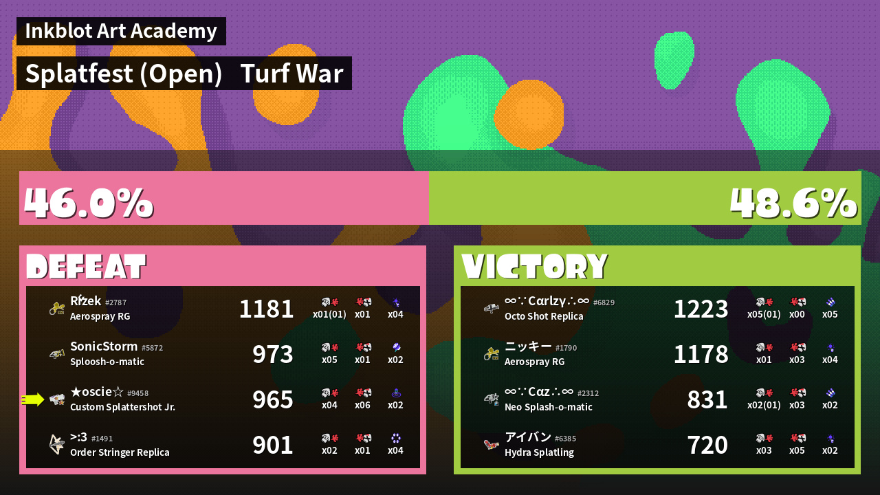 | Medals | #1 Enemy-Base Inker #1 Ground Traveler #2 Overall Splatter | ||