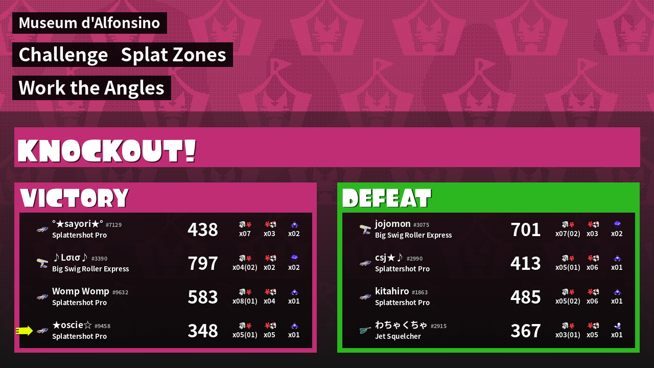 | Weapon | Splattershot Pro ( Angle Shooter / Crab Tank) | ||
