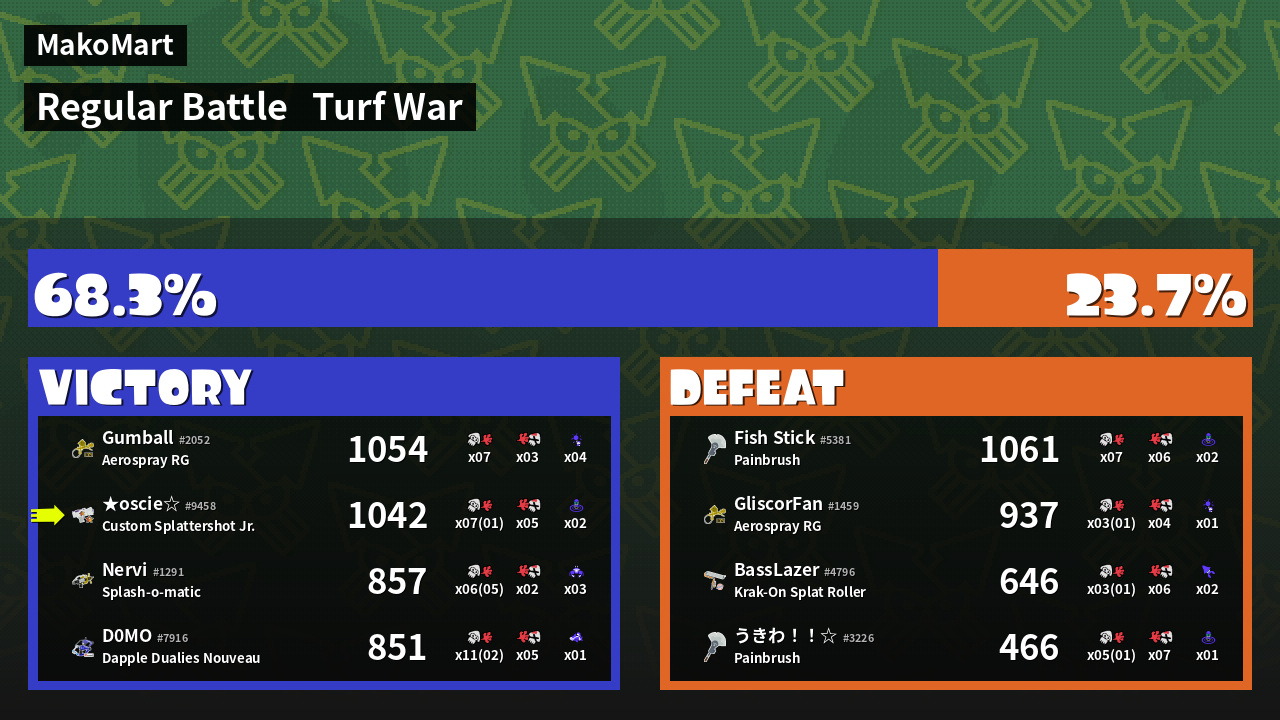 | Mode | Turf War - Regular Battle | ||