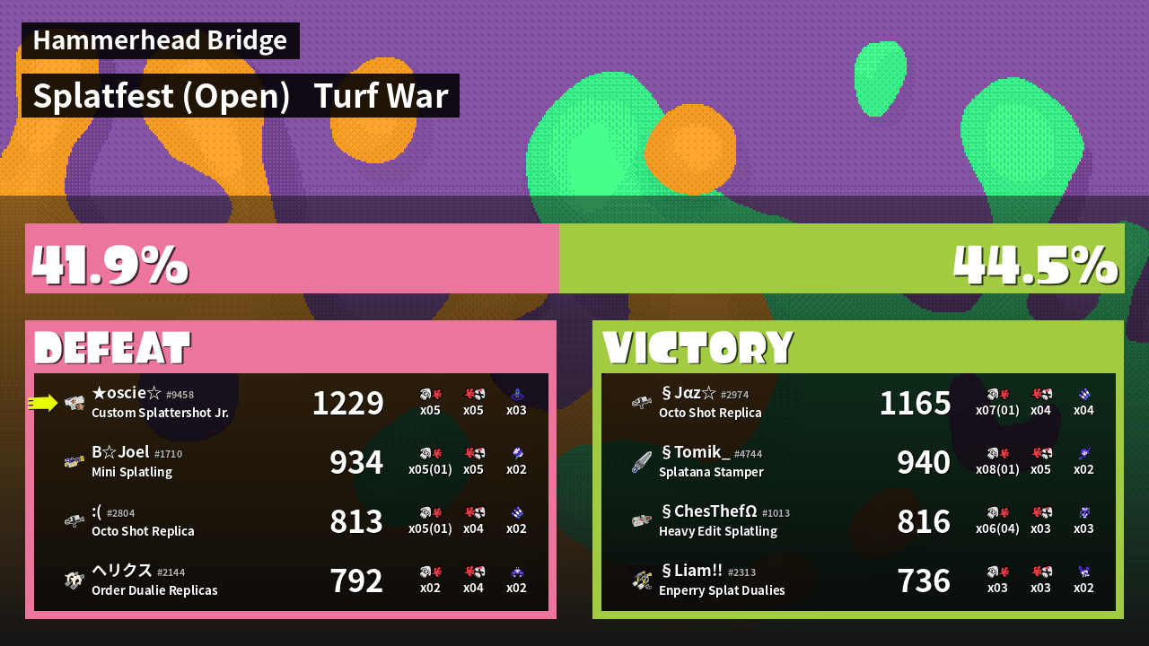 | Medals | #1 Overall Splatter #1 Turf Inker #1 Enemy-Base Inker | ||