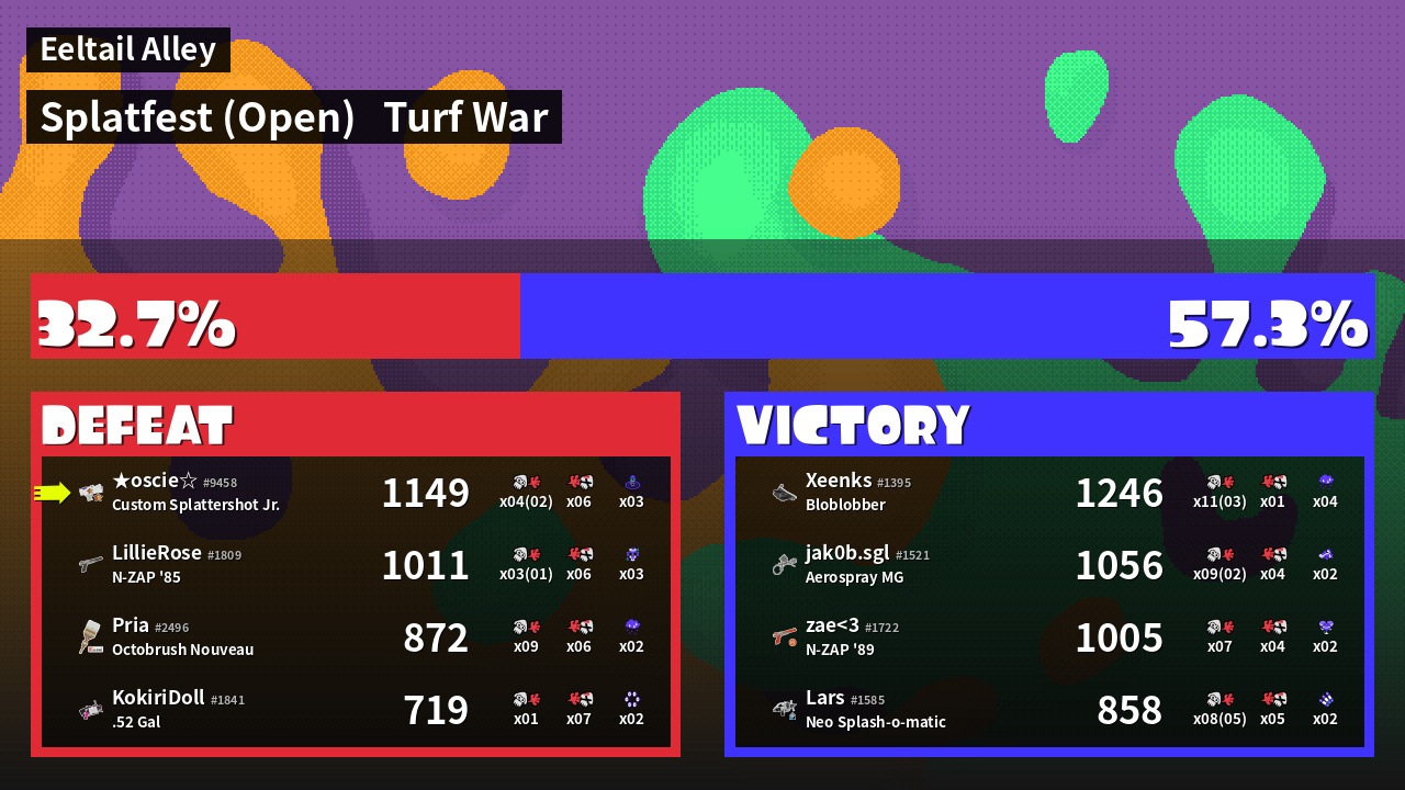 | Medals | #1 Turf Inker #1 Enemy-Base Inker #1 Super Jump Spot | ||
