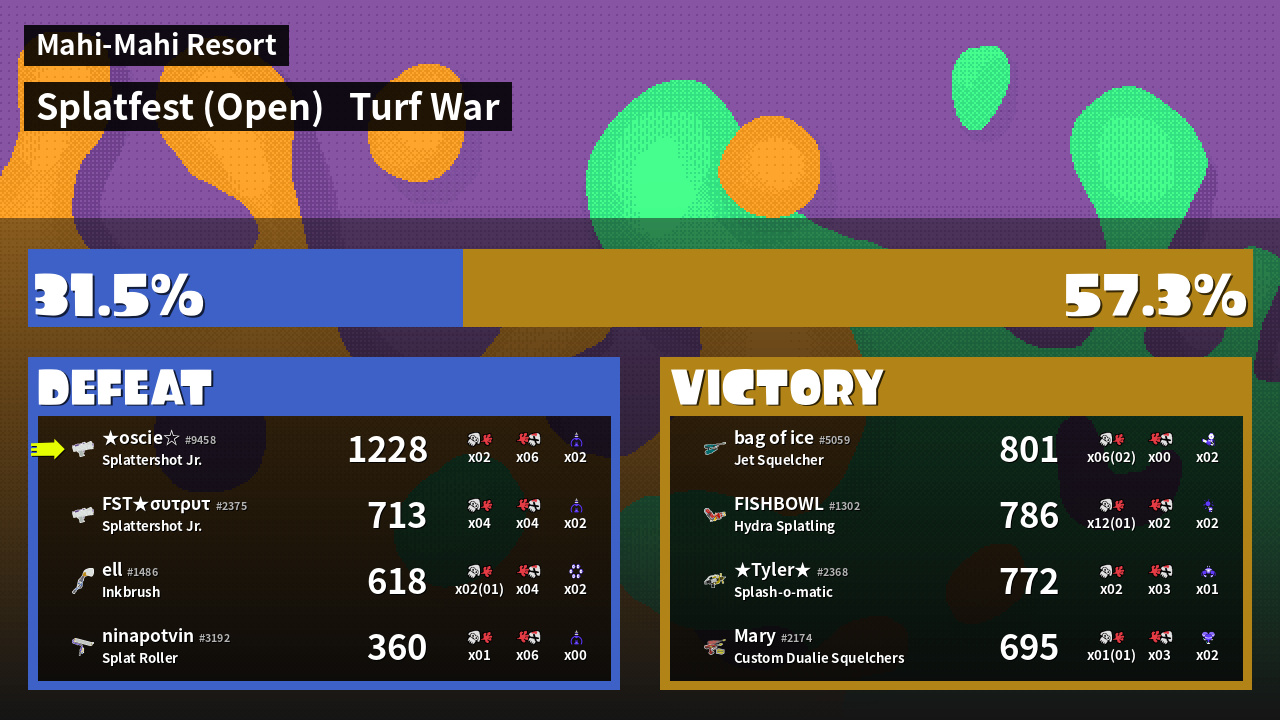 | Medals | #1 Turf Inker #2 Overall Splatter #2 Popular Target | ||