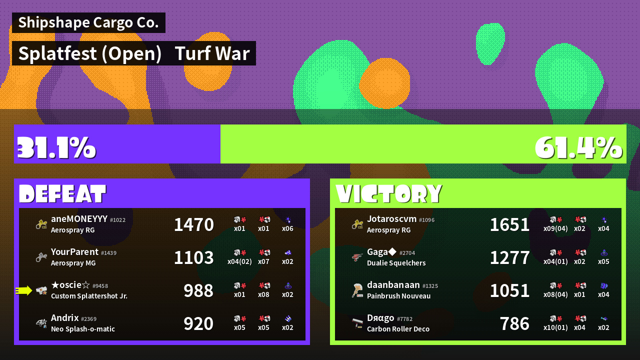 | Medals | #1 Enemy-Base Inker #1 Ground Traveler #1 Wave Breaker User | ||