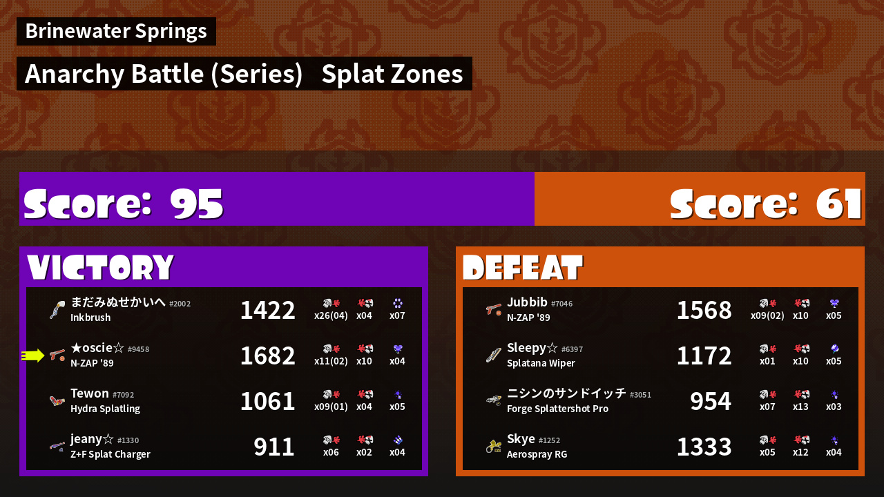 | Mode | Splat Zones - Anarchy Battle (Series) | ||