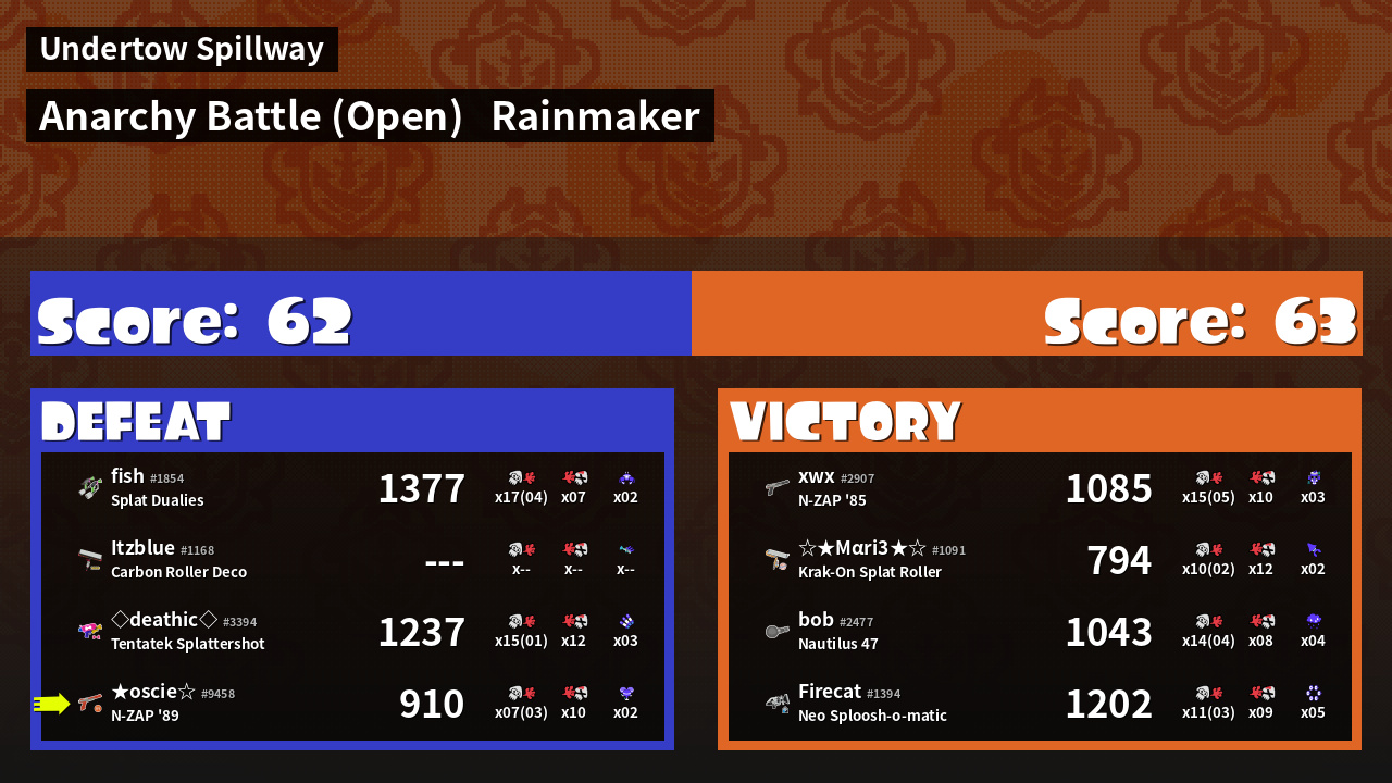 | Mode | Rainmaker - Anarchy Battle (Open) | ||