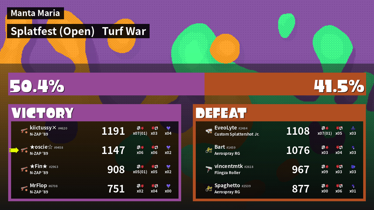 | Medals | #1 Enemy Splatter #1 Damage Taker First Splat! | ||