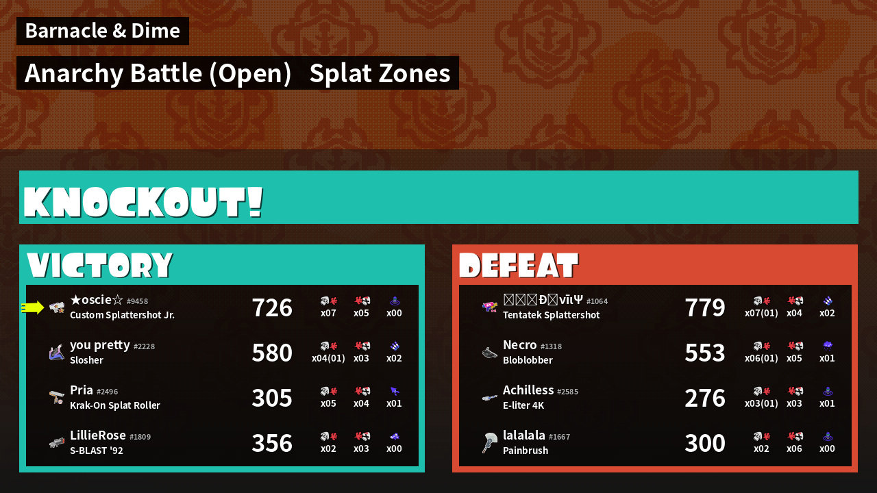 | Mode | Splat Zones - Anarchy Battle (Open) | ||