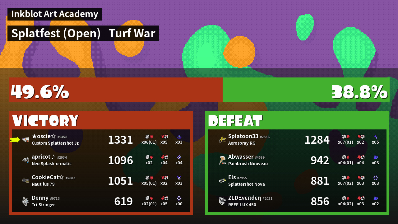 | Medals | #1 Overall Splatter #1 Turf Inker #1 Popular Target | ||