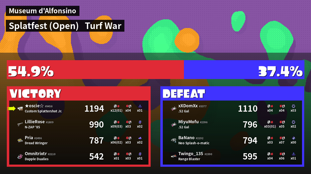 | Medals | #1 Overall Splatter #1 Turf Inker #1 Popular Target | ||