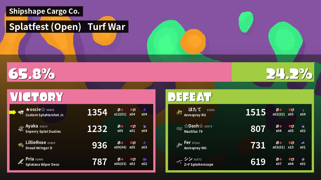 | Medals | #1 Overall Splatter #1 Turf Inker #1 Enemy-Base Inker | ||