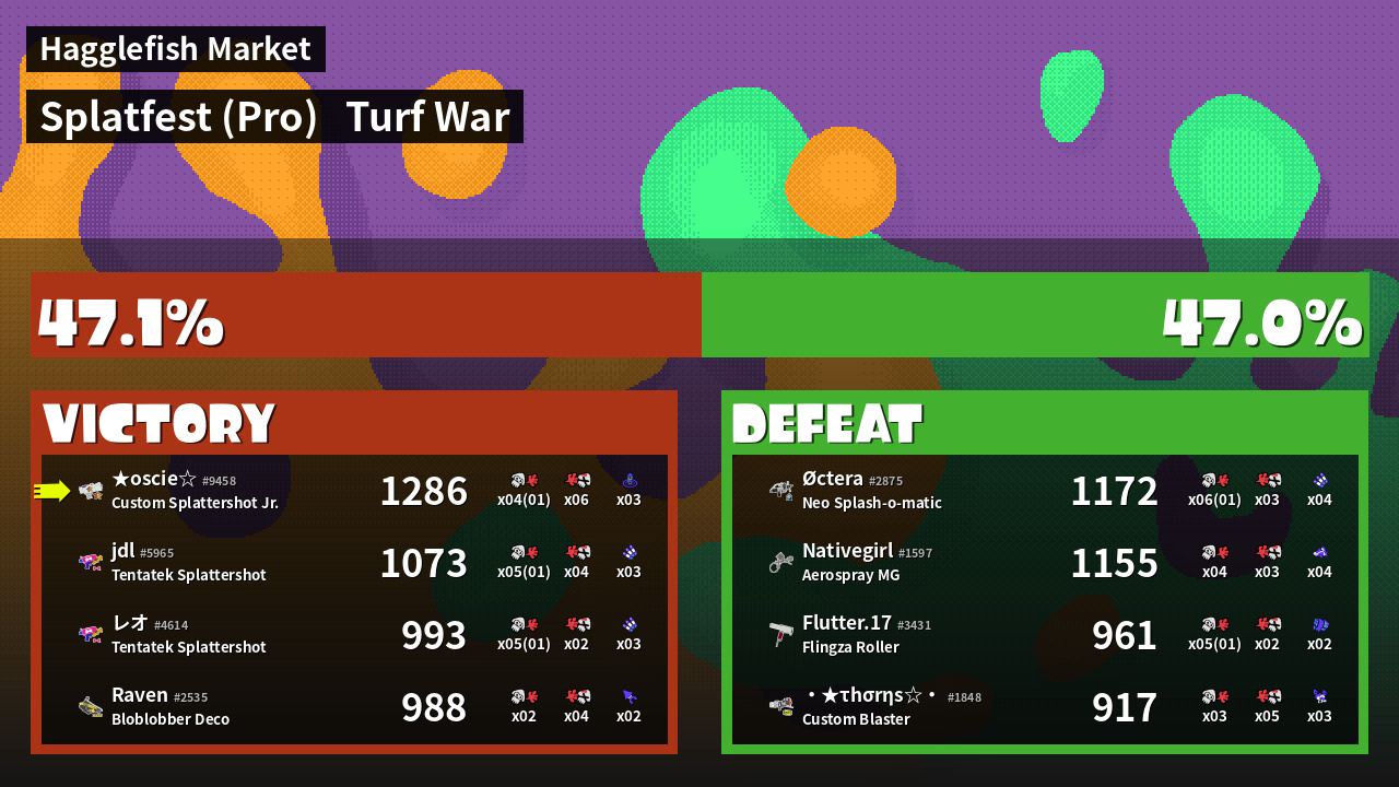 | Mode | Turf War - Splatfest (Pro) | ||