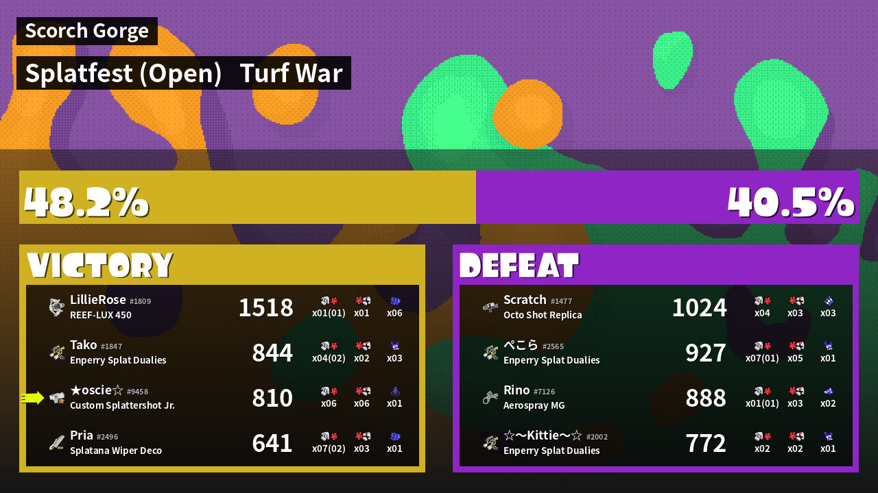 | Medals | #1 Home-Base Inker #1 Enemy Splatter #1 Ground Traveler | ||