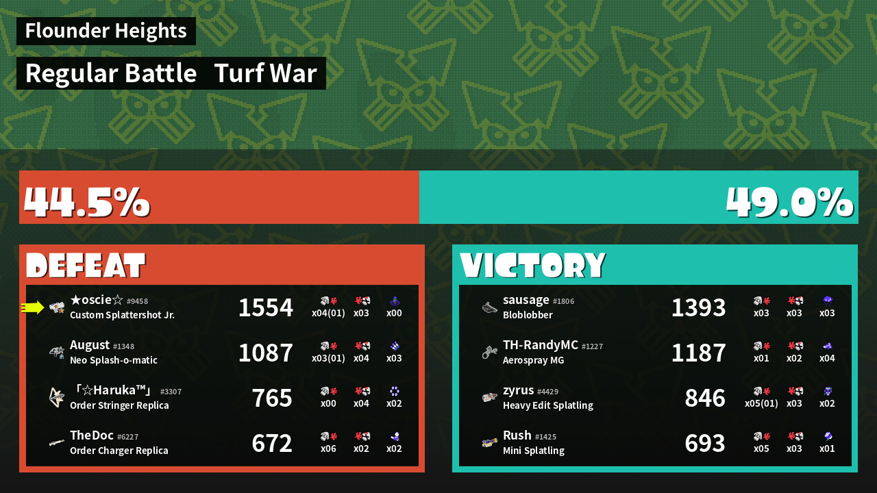 | Medals | #1 Turf Inker #1 Enemy-Base Inker #1 Splat Assister | ||