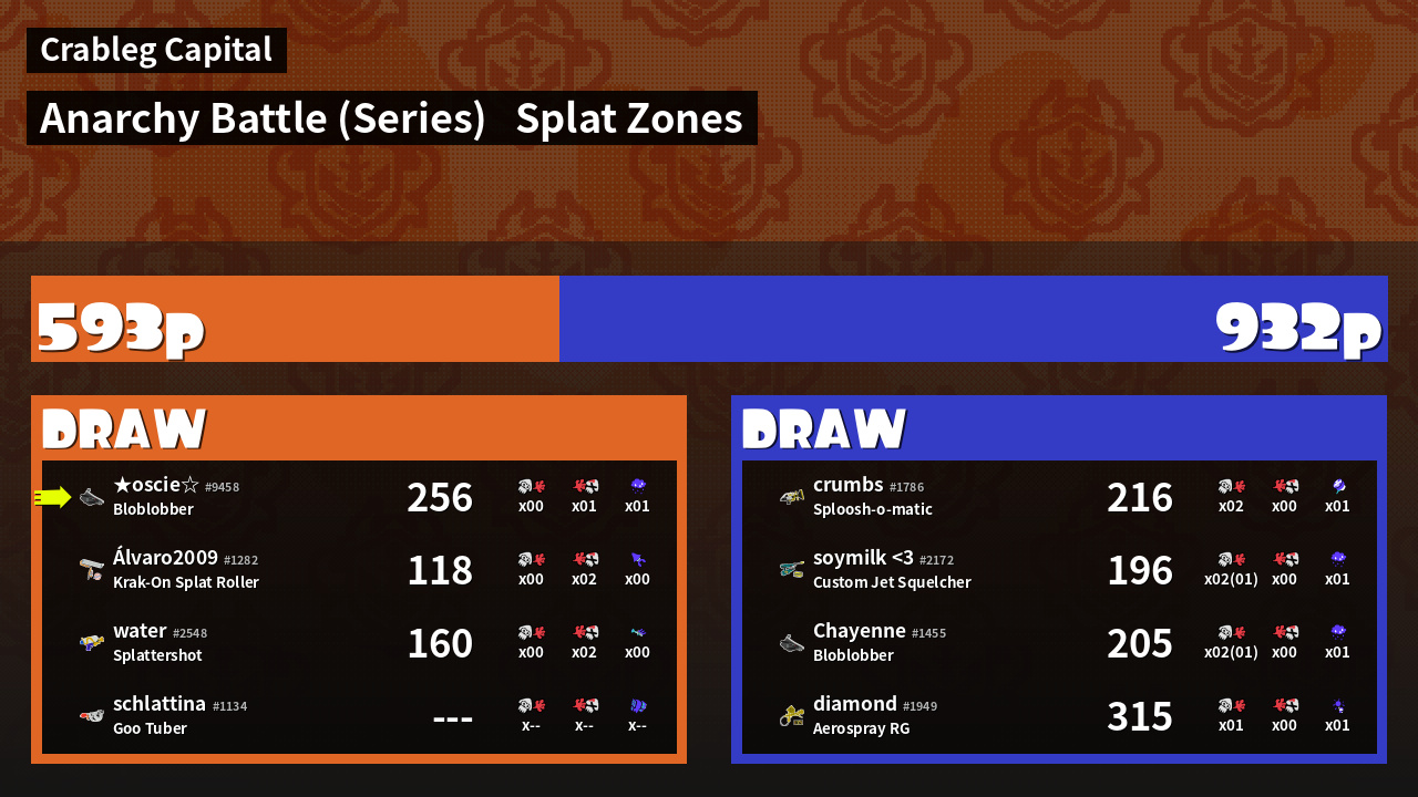 | Mode | Splat Zones - Anarchy Battle (Series) | ||