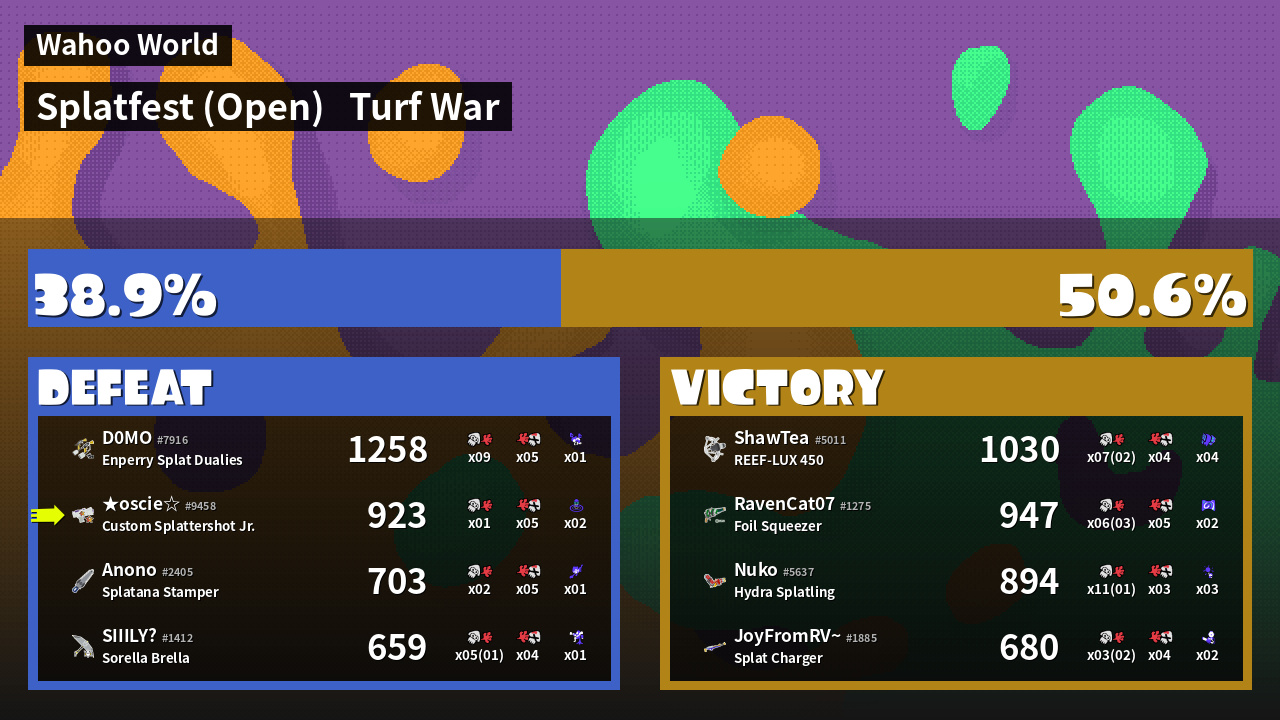 | Mode | Turf War - Splatfest (Open) | ||