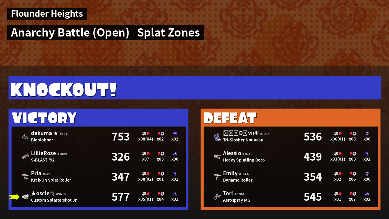 | Mode | Splat Zones - Anarchy Battle (Open) | ||