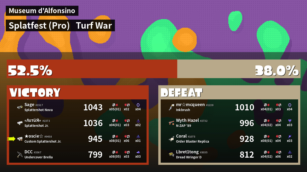 | Mode | Turf War - Splatfest (Pro) | ||