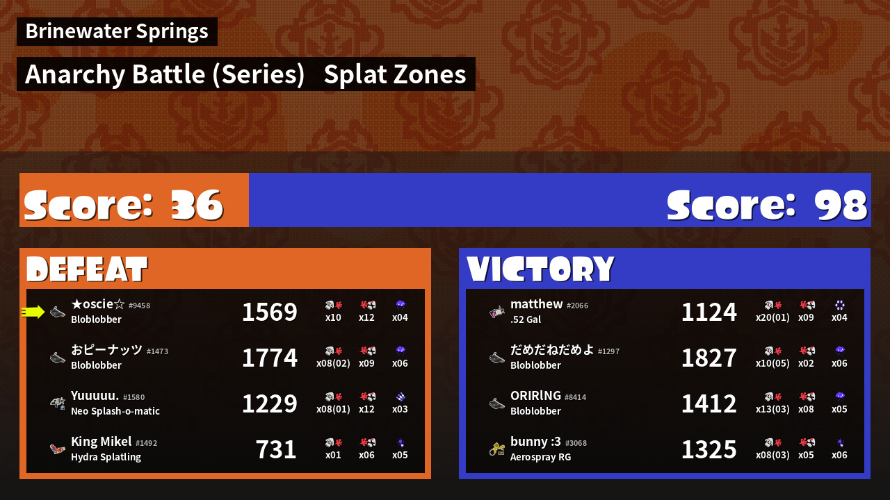 | Mode | Splat Zones - Anarchy Battle (Series) | ||
