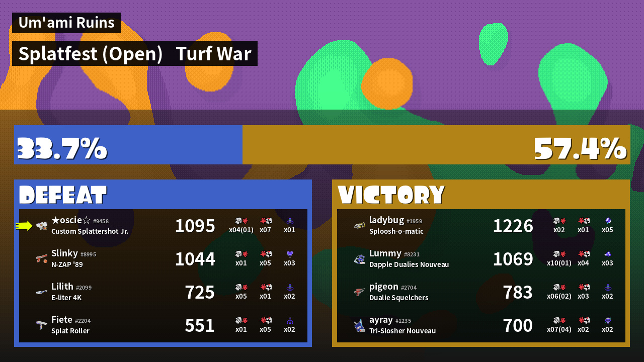 | Medals | #1 Turf Inker #1 Splat Assister #2 Overall Splatter | ||