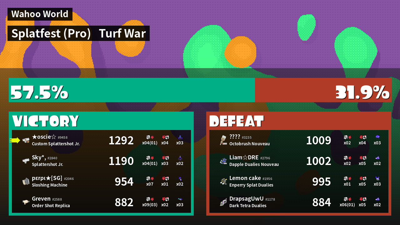 | Mode | Turf War - Splatfest (Pro) | ||