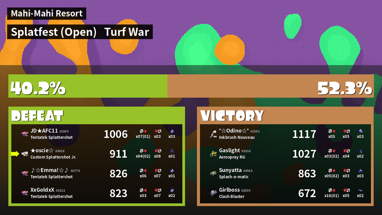 | Mode | Turf War - Splatfest (Open) | ||