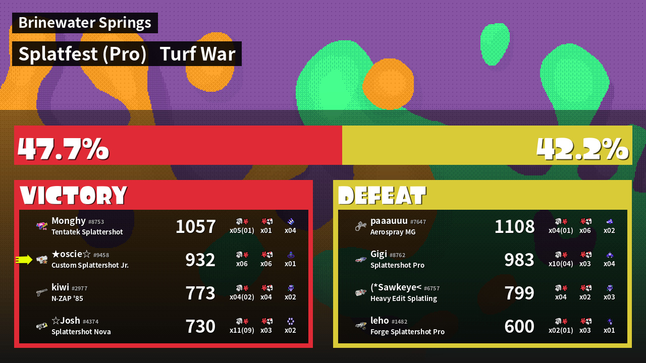 | Mode | Turf War - Splatfest (Pro) | ||
