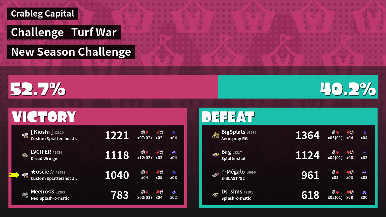 | Medals | #1 Ground Traveler #1 Wave Breaker User #2 Enemy-Base Inker | ||