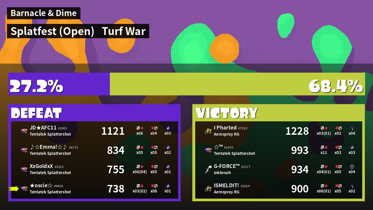 | Weapon | Tentatek Splattershot ( Splat Bomb / Triple Inkstrike) | ||