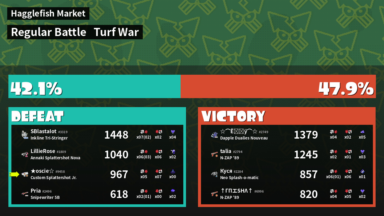 | Mode | Turf War - Regular Battle | ||