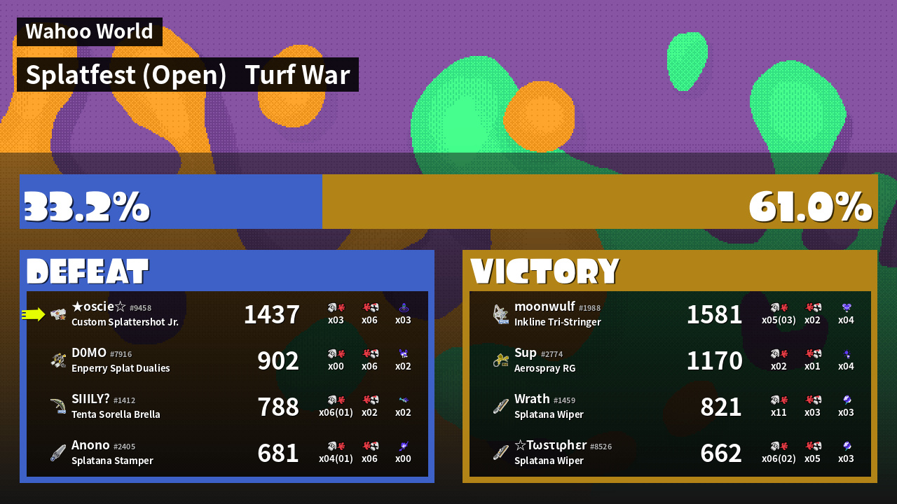 | Medals | #1 Turf Inker #1 Home-Base Inker #1 Enemy-Base Inker | ||