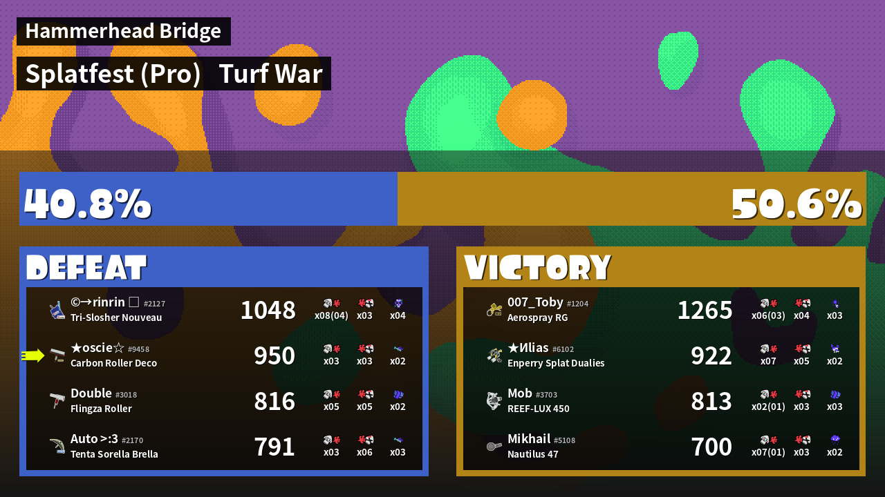 | Weapon | Carbon Roller Deco ( Burst Bomb / Trizooka) | ||