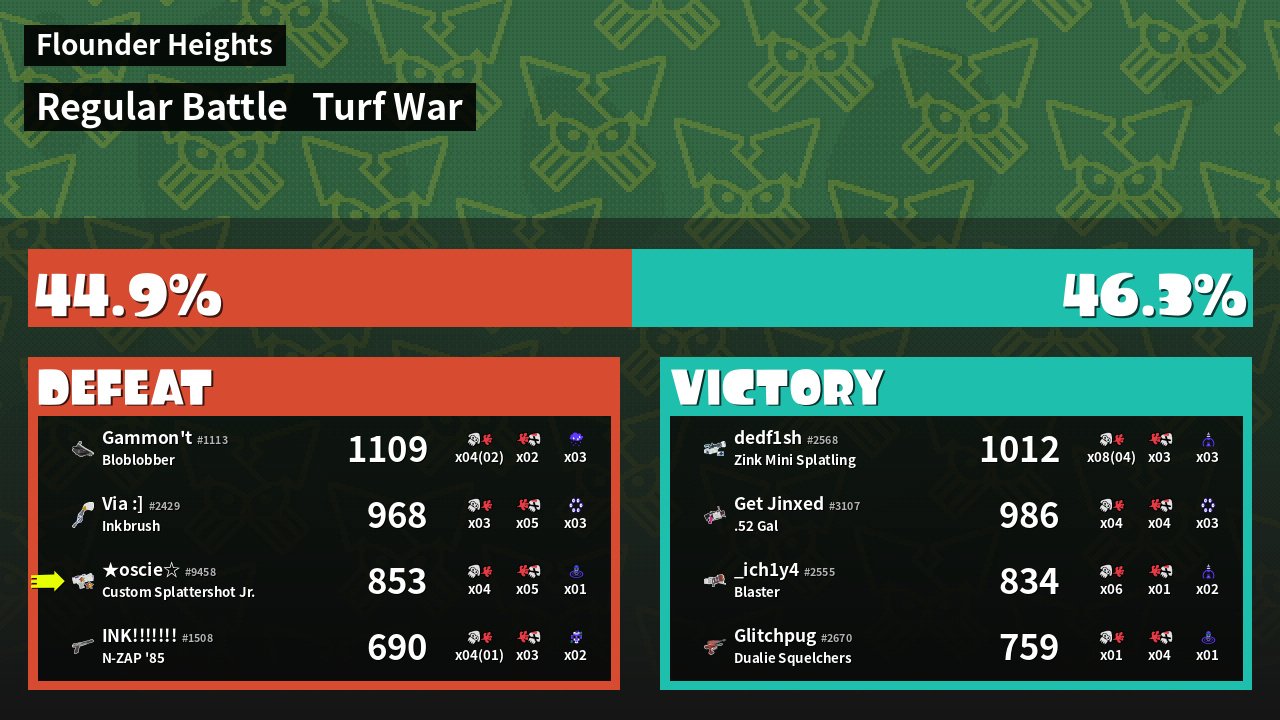 | Medals | #1 Overall Splatter #1 Enemy Splatter #1 Damage Taker | ||