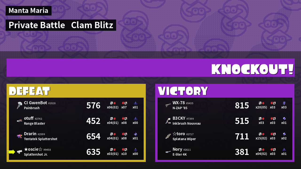 | Weapon | Splattershot Jr. ( Splat Bomb / Big Bubbler) | ||